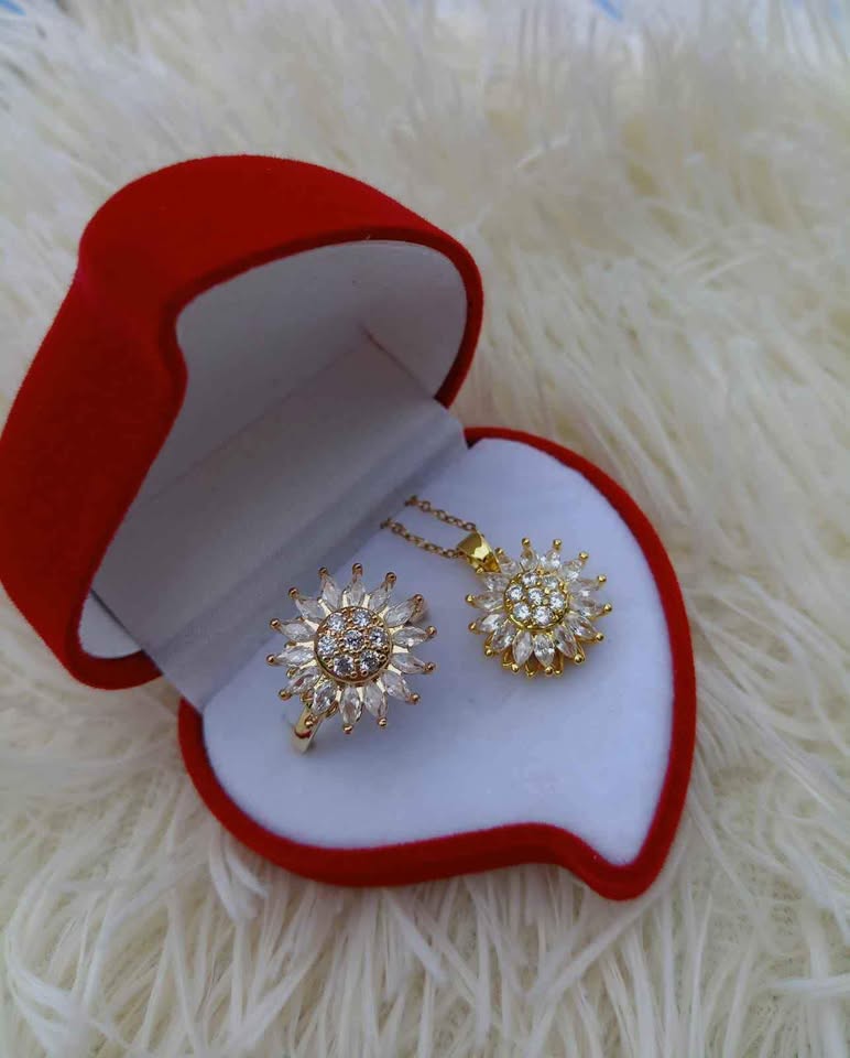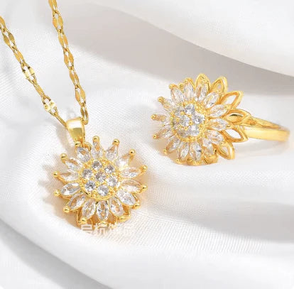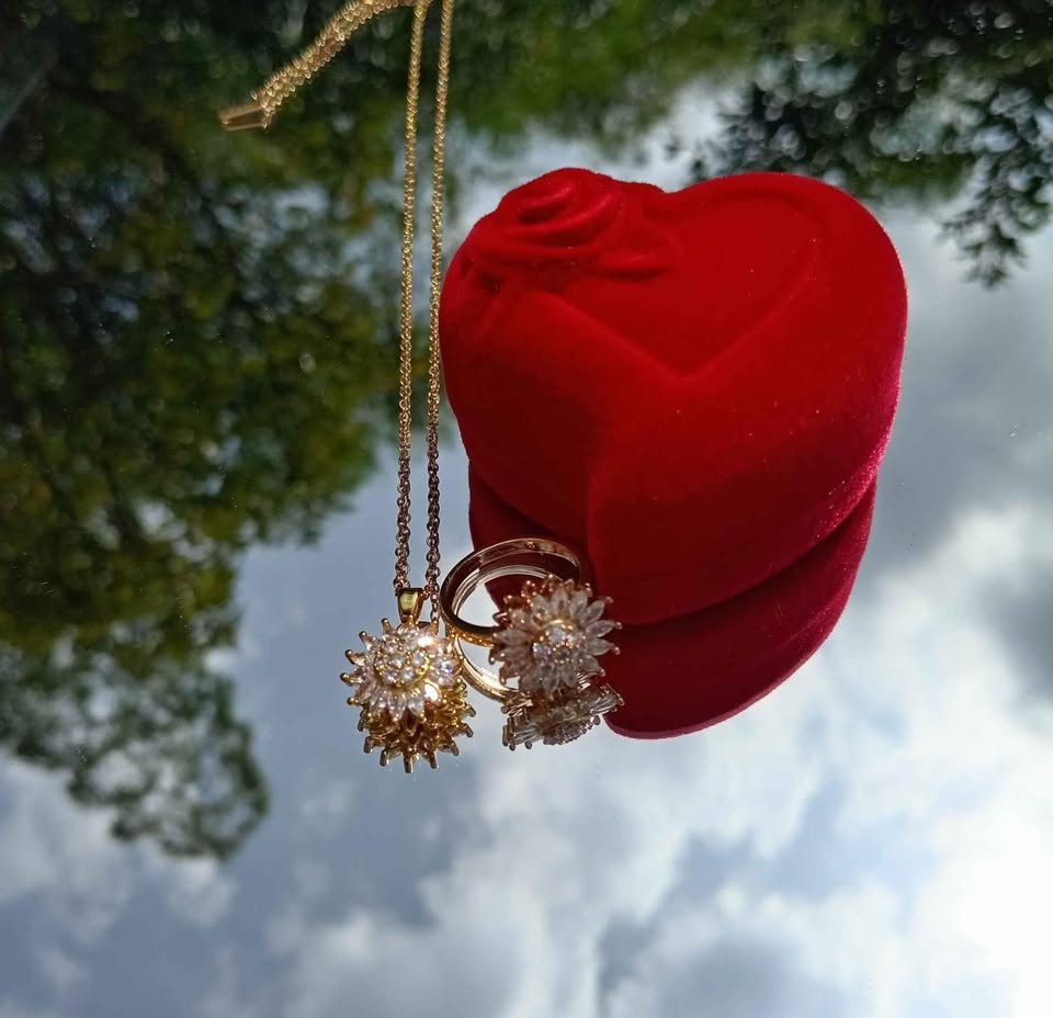 El anillo y Collar de Girasol Giratorio es único por su diseño inspirado en la alegría de los girasoles, su mecanismo giratorio que añade un elemento dinámico e interactivo...💗🌻