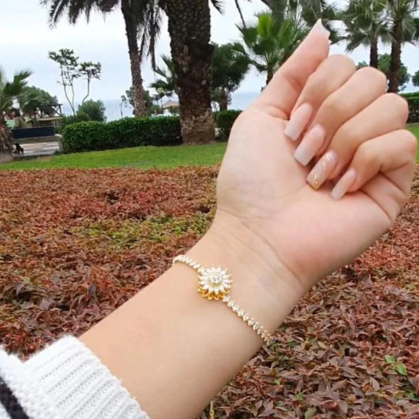 "Brilla como el sol con nuestra pulsera de girasol giratorio, un toque de alegría en cada giro."🌻💓