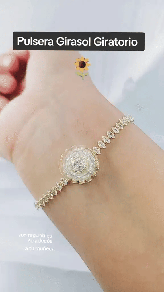 La pulsera de Girasol Giratorio es único por su diseño inspirado en la alegría de los girasoles, su mecanismo giratorio que añade un elemento dinámico e interactivo...💗🌻